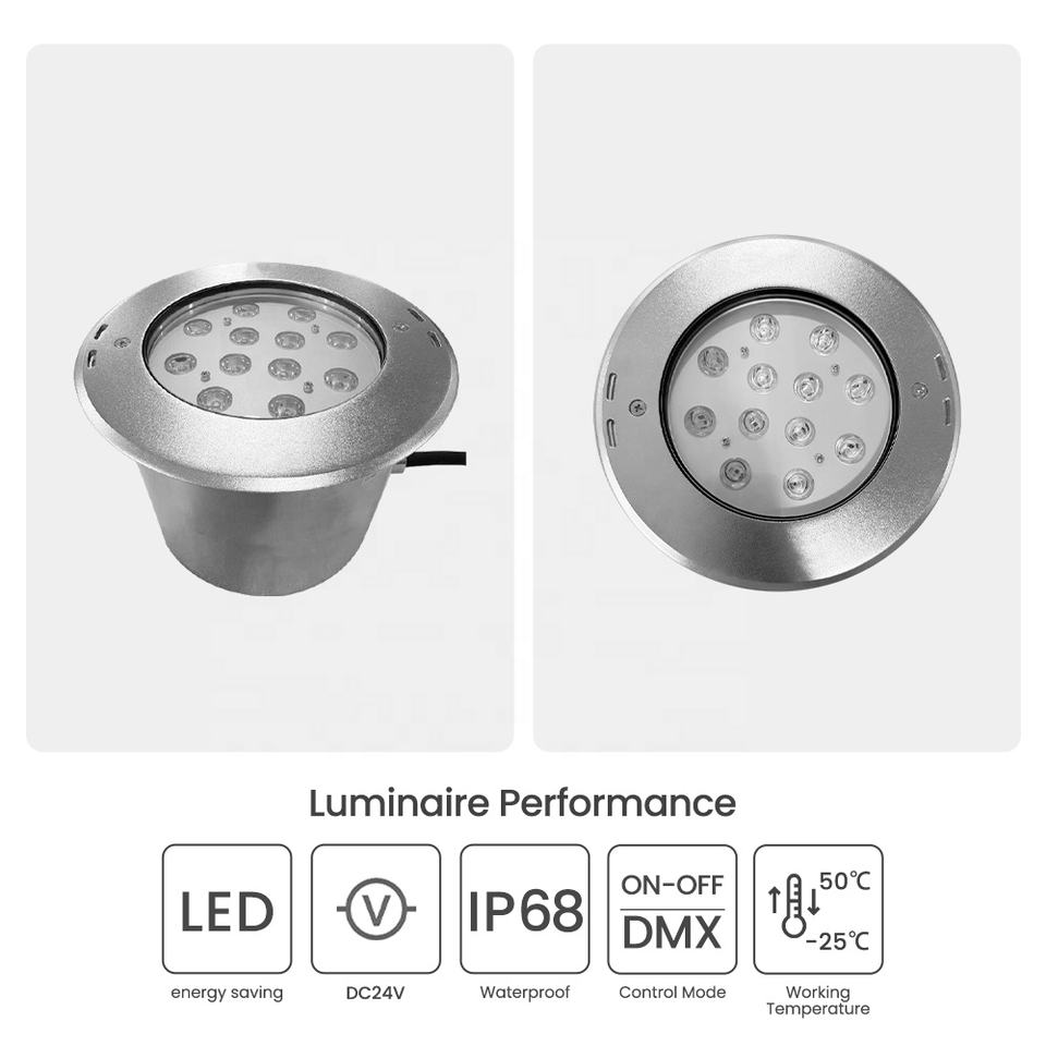 IP68 a prueba de agua 36W LED Luces de piscina empotradas Tipo enterrado 12V 24V Luz de natación subacuática Cuerpo de acero inoxidable para hoteles