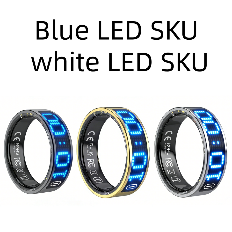 Anillo Inteligente con Pantalla LED Digital a Prueba de Agua IP68, Fecha y Hora, Botón Táctil, Contador Musulmán, Frecuencia Cardíaca, Monitor de Salud HRV