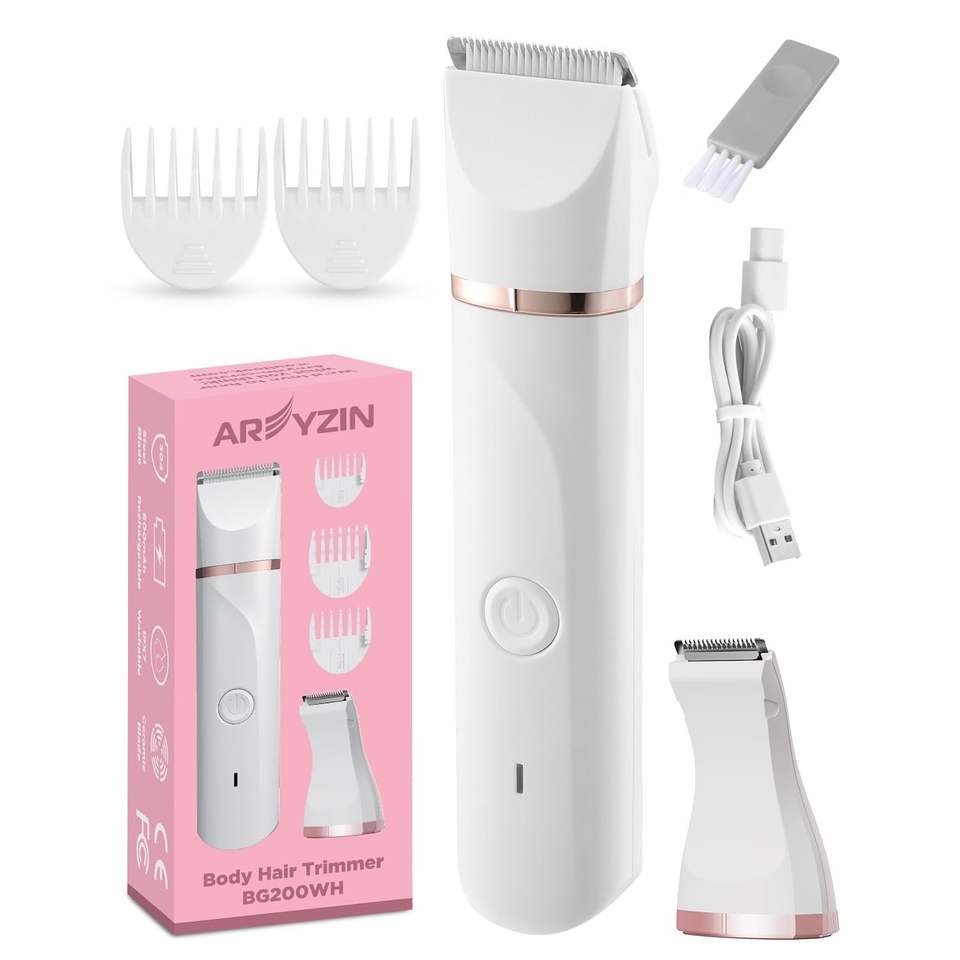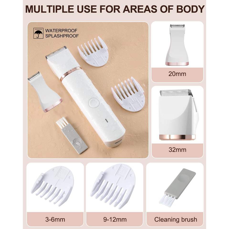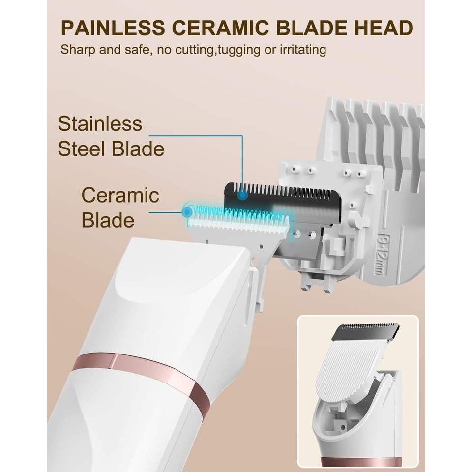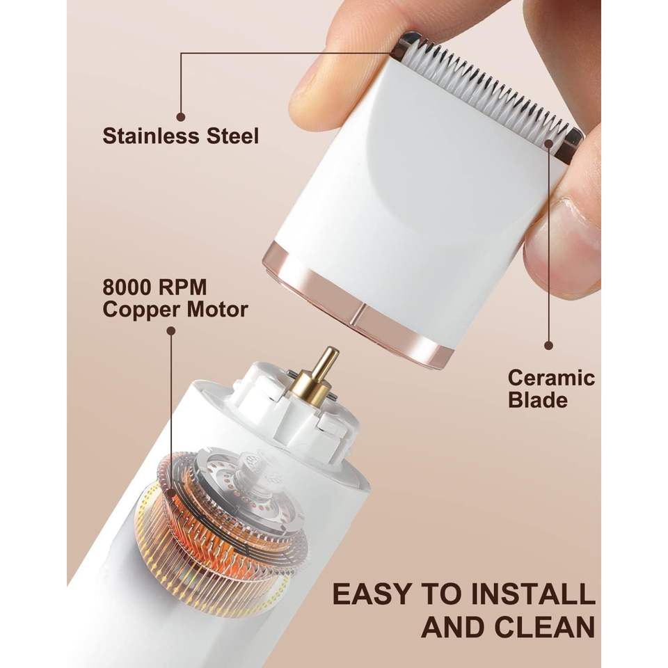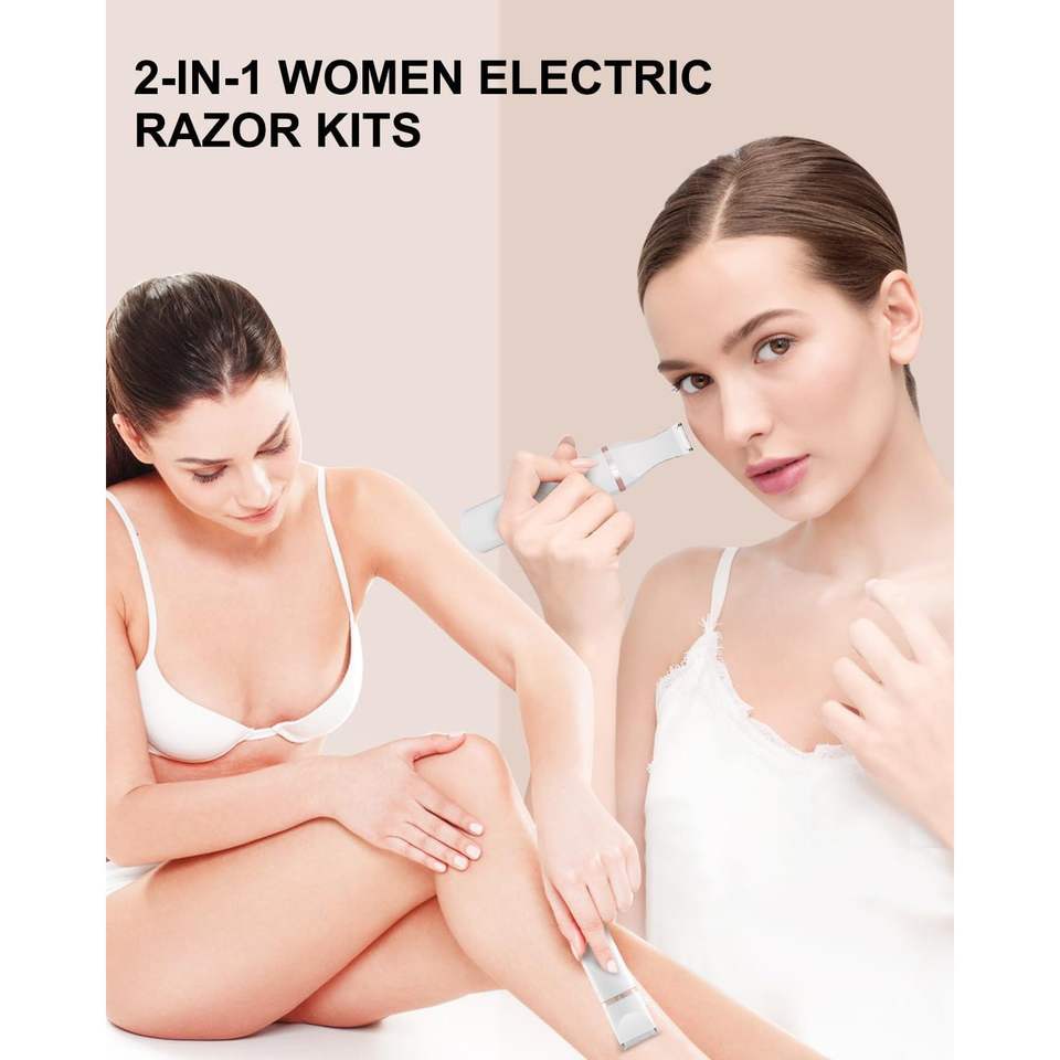 Maquinilla de Afeitar Eléctrica Impermeable IPX7 para Mujer con 2 Cabezales de Cuchillas de Cerámica Reemplazables, Fuente de Alimentación USB para Rostro, Brazos, Bikini y Axilas