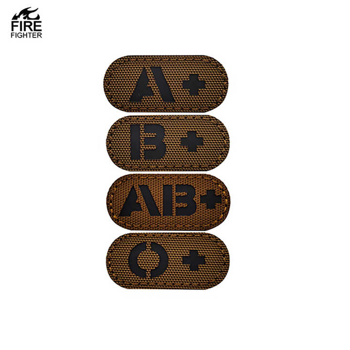 IR Tan APOS A+ B+ AB+ O+ Tipo de Sangre 1x2 Botiquín de Primeros Auxilios IFAK Coyote Táctico Parche de Velcro