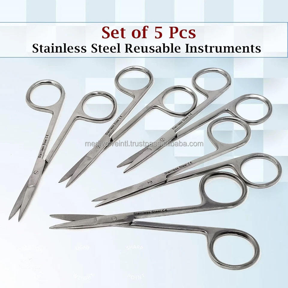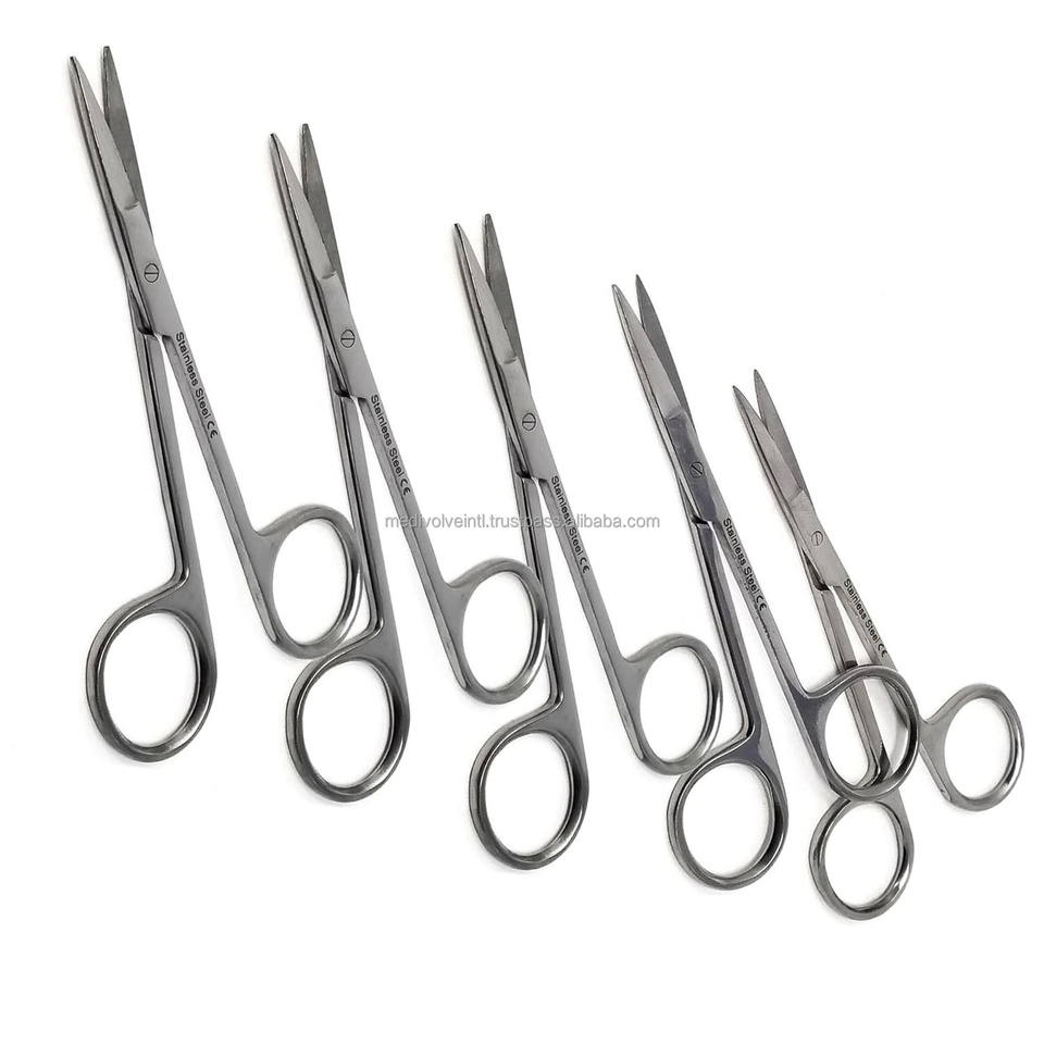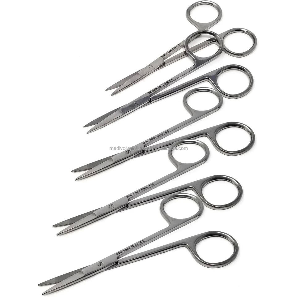 Tijeras IRIS, Juego de 5 Piezas, 4.5 Pulgadas, Puntas Rectas y Puntiagudas, Instrumentos Quirúrgicos, Dentales y Veterinarios, CE ISO OEM ODM, Proveedor Mayorista