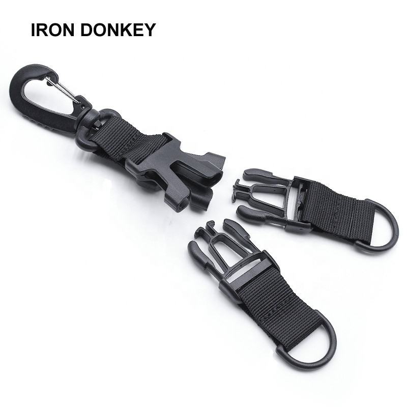 Llavero táctico para exteriores IRONDONKEY, cinta de nailon, hebilla para mochila, D tipo anillo colgante, llavero, doble separación, hebilla rápida