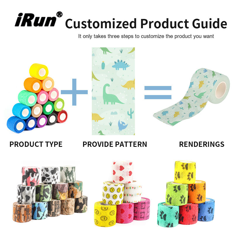 Cinta cohesiva de boxeo impermeable IRun, vendaje autoadherente atlético de béisbol personalizado, vendaje elástico para tobillo de muñeca deportiva