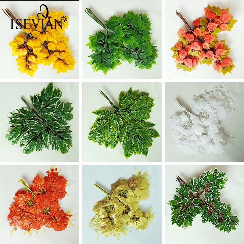 Nombre:ISEVIAN Artificial Gingko Uva Abedul Hojas Seda Plástico Hoja de Arce
