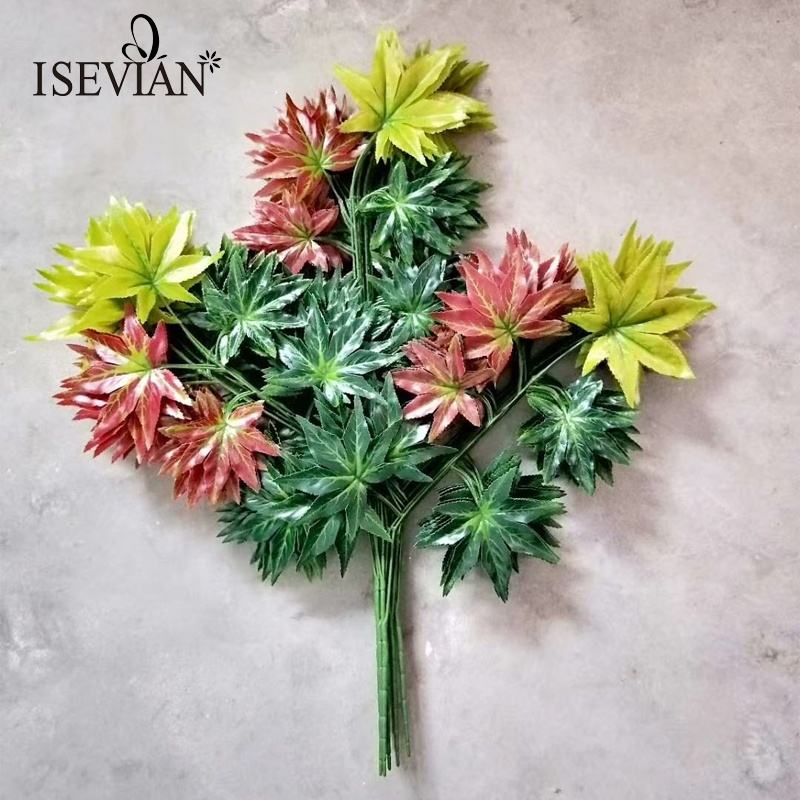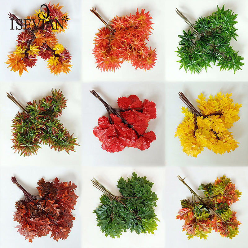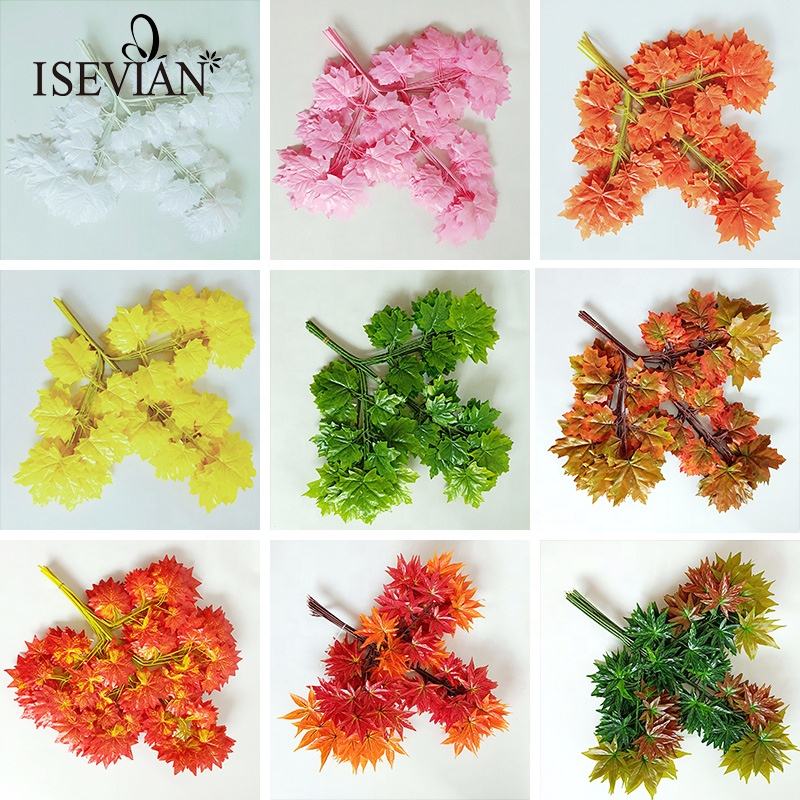 ISEVIAN Artificial Gingko Uva Abedul Hojas Seda Plástico Hoja de Arce
