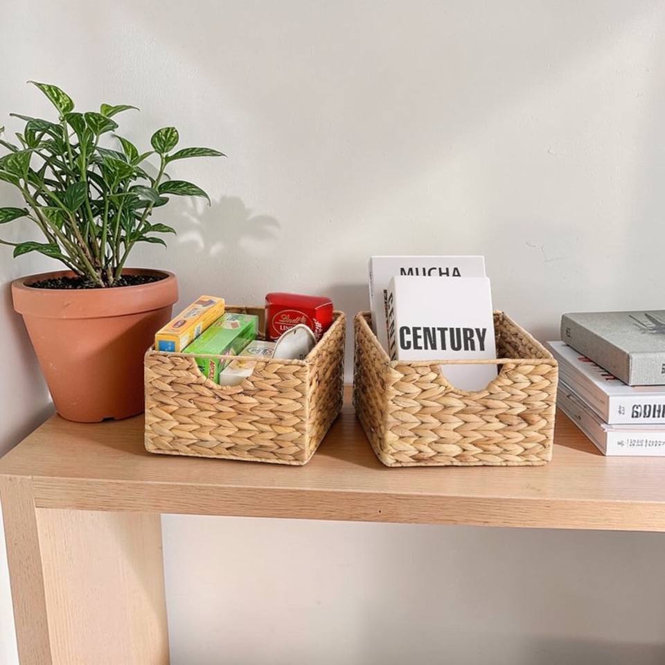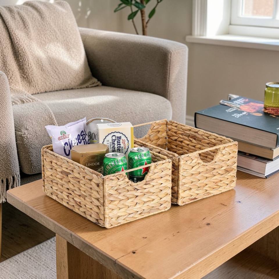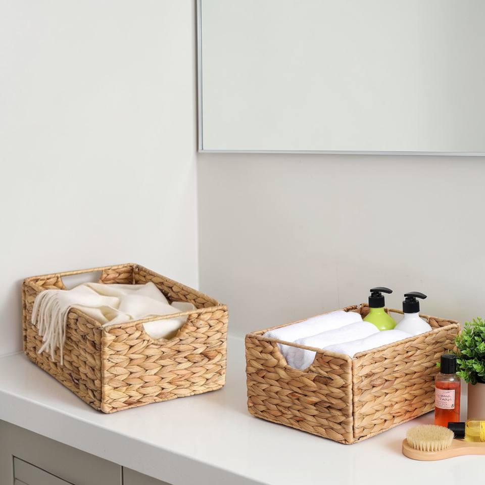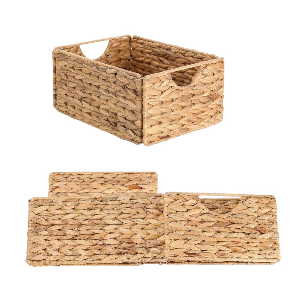 ISLA Paquete de 2 Cestas de Almacenamiento Rectangulares Plegables de Jacinto Tejidas a Mano, Contenedores Organizadores Versátiles con Asas Recortadas, Venta al por Mayor OEM
