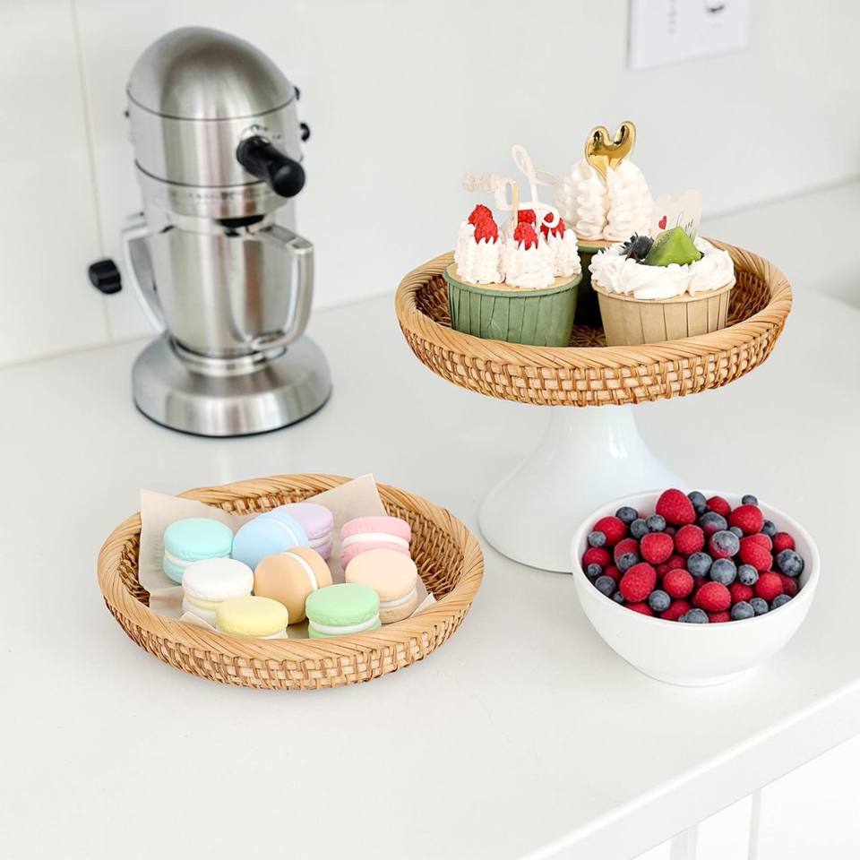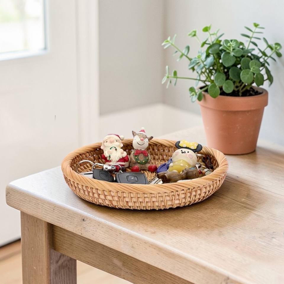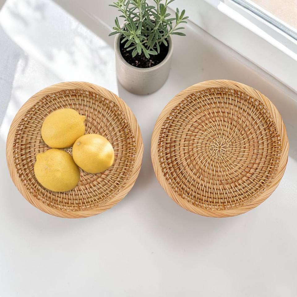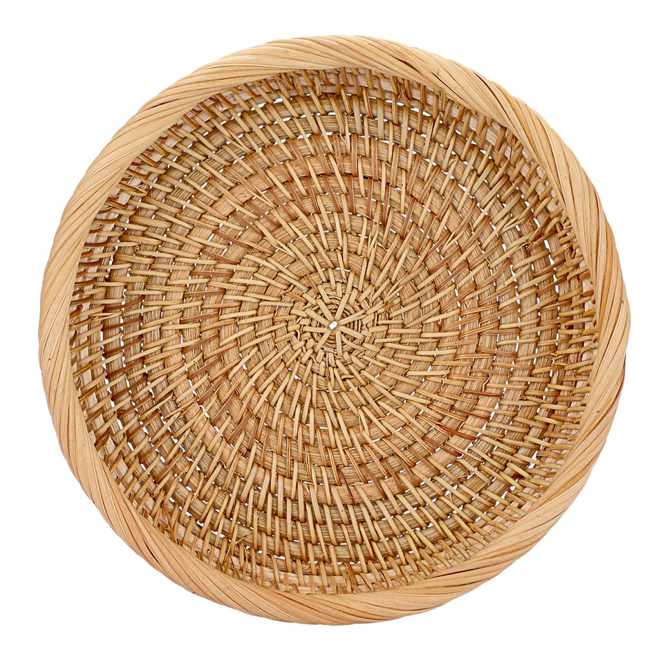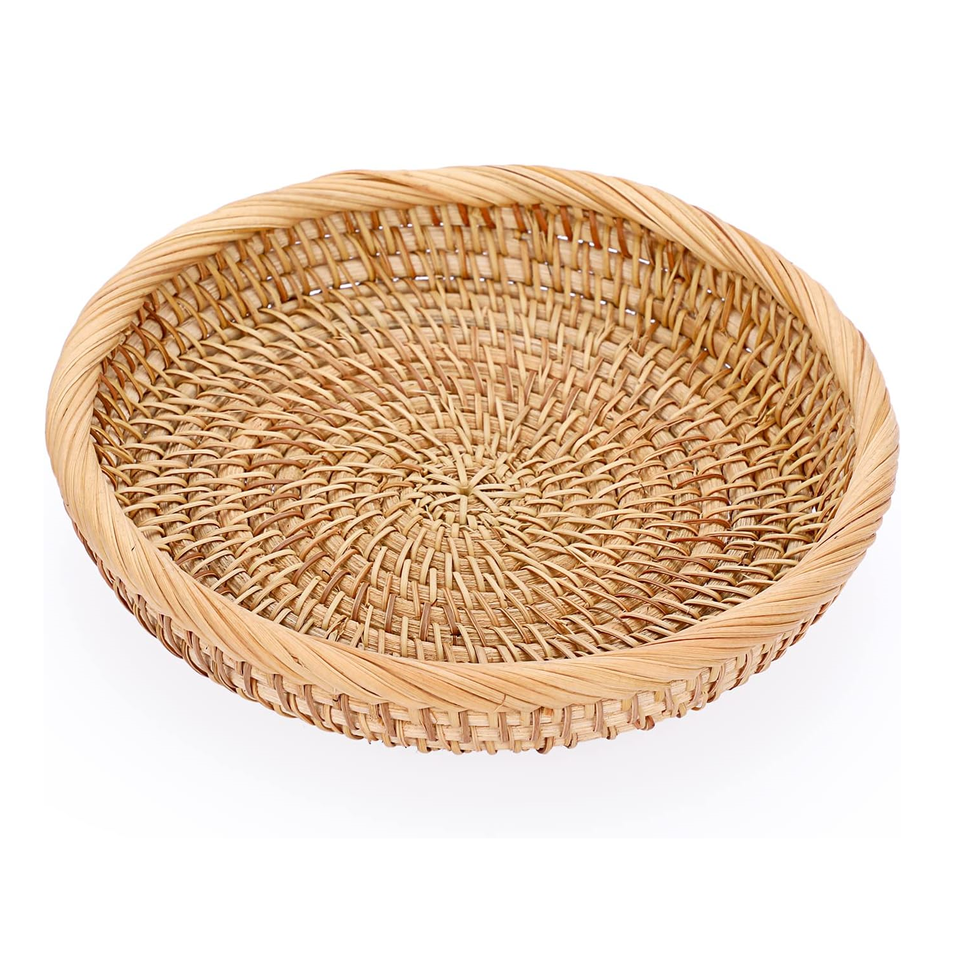 Cesta Redonda de Mimbre Natural ISLA para Alimentos y Artículos del Hogar, Bandeja Decorativa Tejida a Mano, Venta al Por Mayor