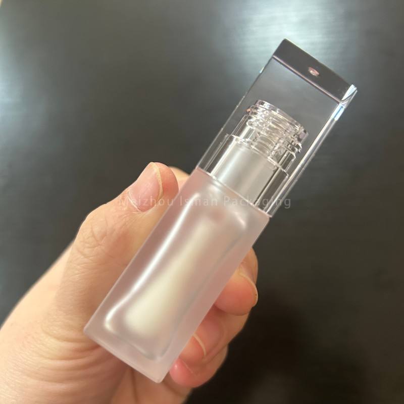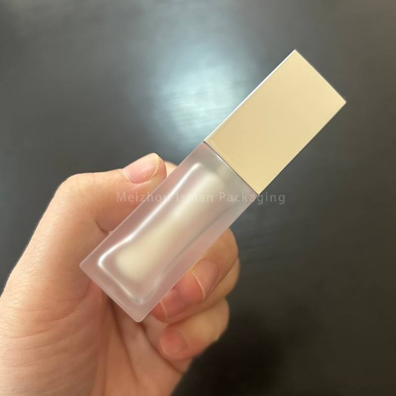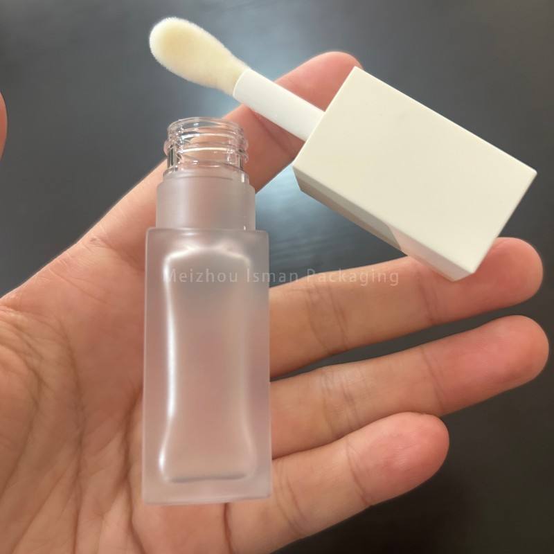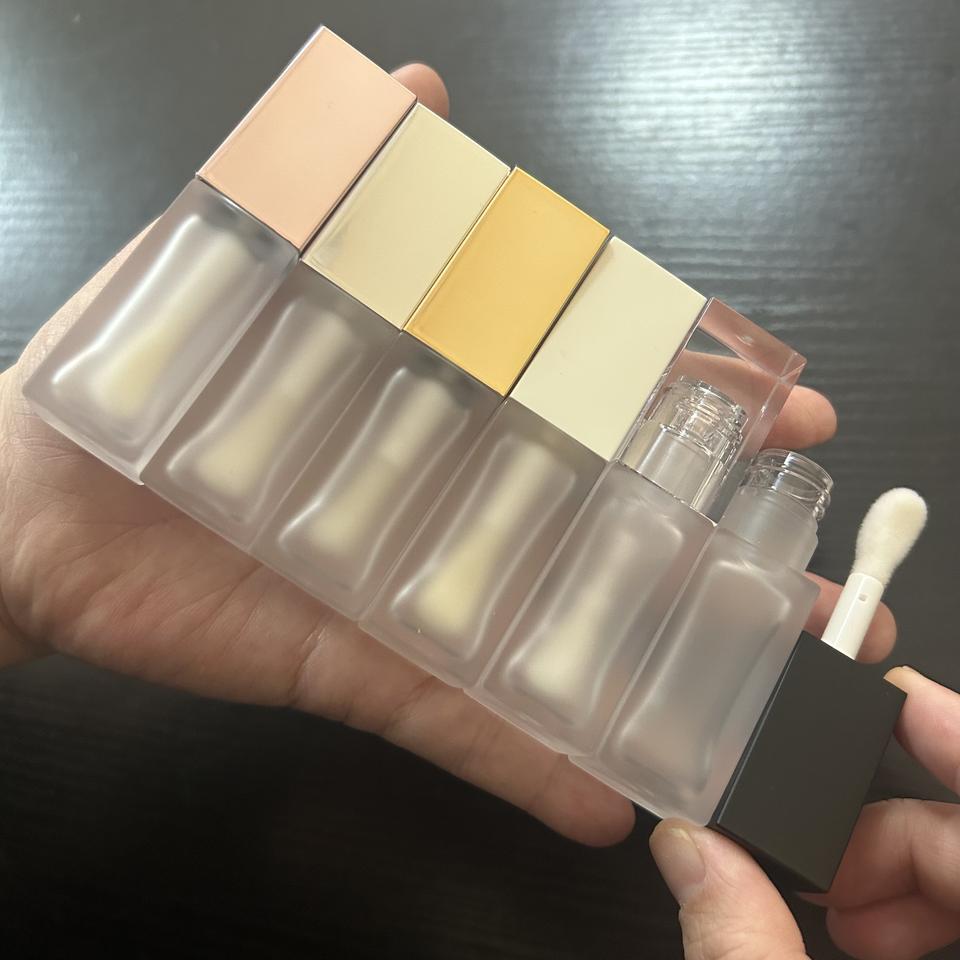 Tubo de brillo labial cuadrado esmerilado de 8 ml con varita grande