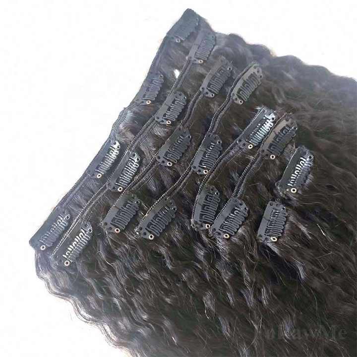 Extensiones de Cabello con Clip ISWEET, Cabello Humano Virgen Malayo, Extensiones con Clip, Rizado Ligero, Yaki Liso