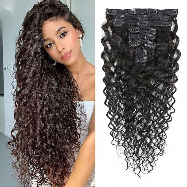 Nombre del Producto:Extensiones de cabello con clip, ondulado, de cabello humano.