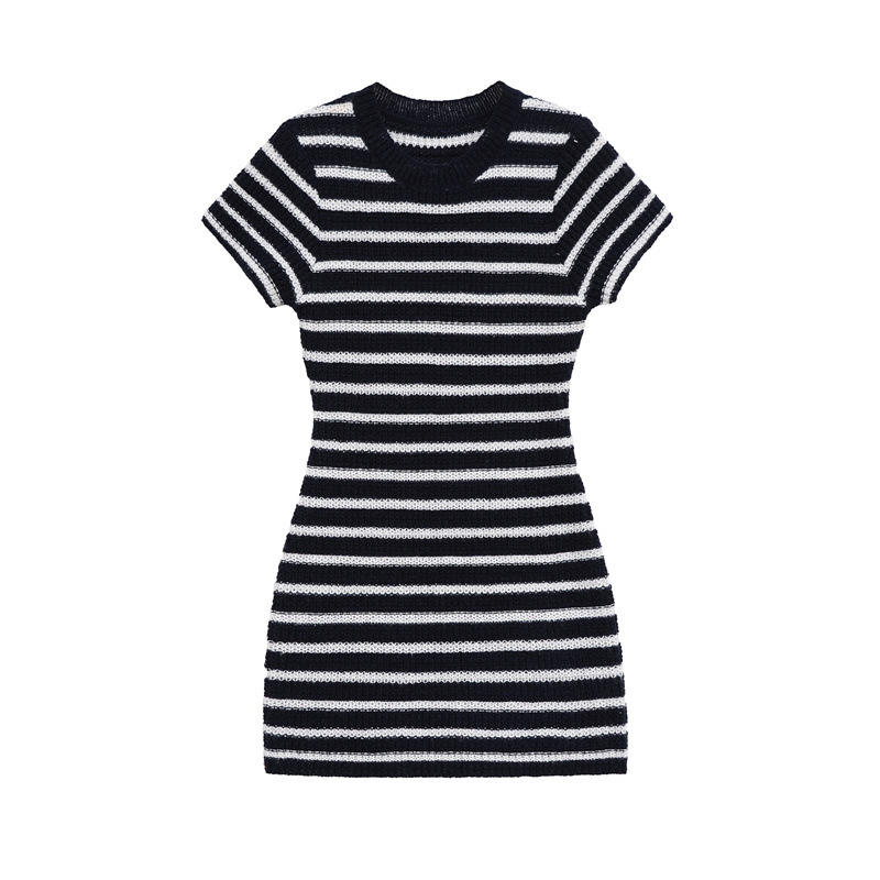 Vestido Mini de Punto a Rayas Blancas y Negras IStapromo Gifts, Ropa de Mujer, Vestido Informal de Mujer de Alta Calidad, Vestido Holgado de Punto
