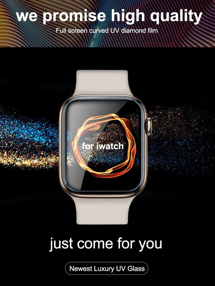 Ivanaze-Película de cubierta completa curvada 3D para Apple Watch Series SE, 6, 4, 5, 40mm, 44mm, Protector de pantalla, pegamento completo, vidrio UV para Series 1, 2, 3