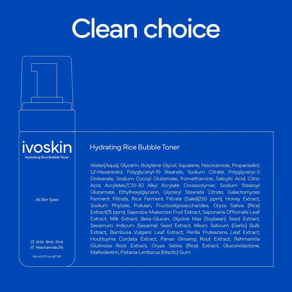 Tónico Facial Líquido de Espuma de Arroz IVOSKIN con PHA, Iluminador Suave, Reduce Poros, Calmante, Hidratante, Hidratación de Lujo, Antienvejecimiento