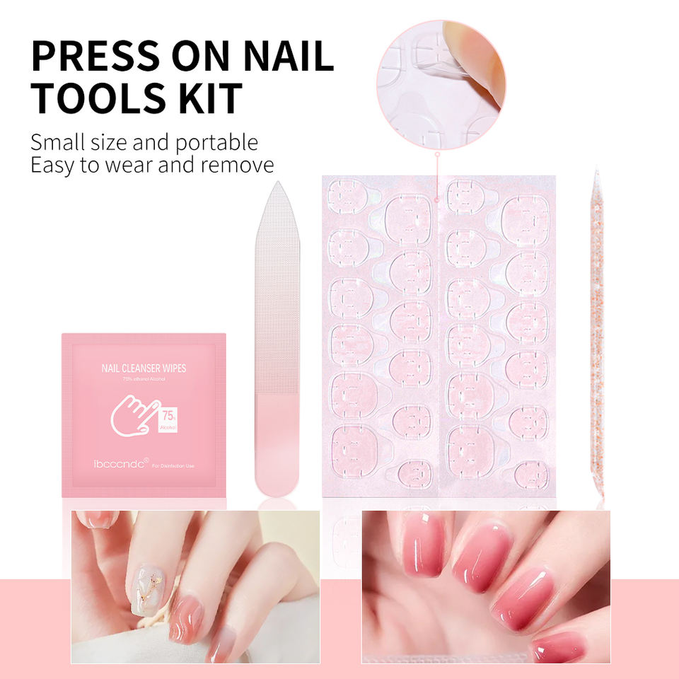 Ibcccndc, paquete de bolsa láser en polvo, kit de herramientas para uñas, uñas postizas reutilizables duraderas, pegamento de gelatina extraíble, juego de Arte de uñas