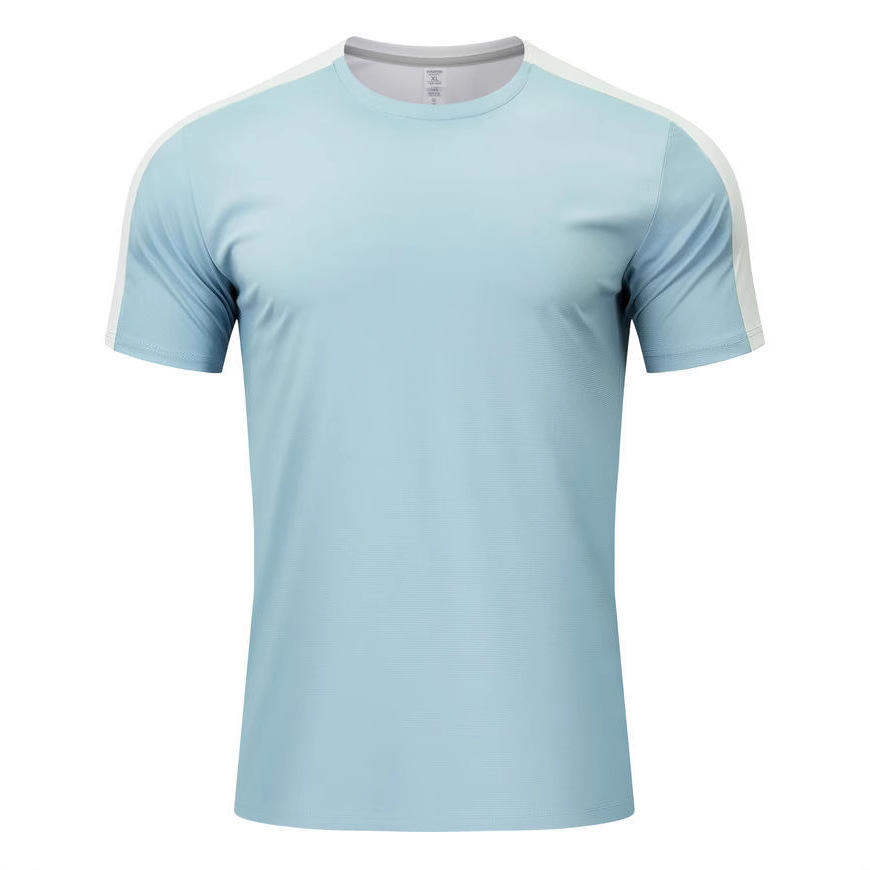 Ice Blue Men's Crew Neck T-Shirt Short Sleeve Polyester Spandex Workwear Summer Sportswear