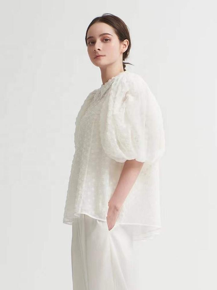Telas de Jacquard de Poliéster con Diseño de Bola de Pelo con Sensación de Frío, Relieve Tridimensional, Elásticas en 4 Direcciones para Ropa de Verano