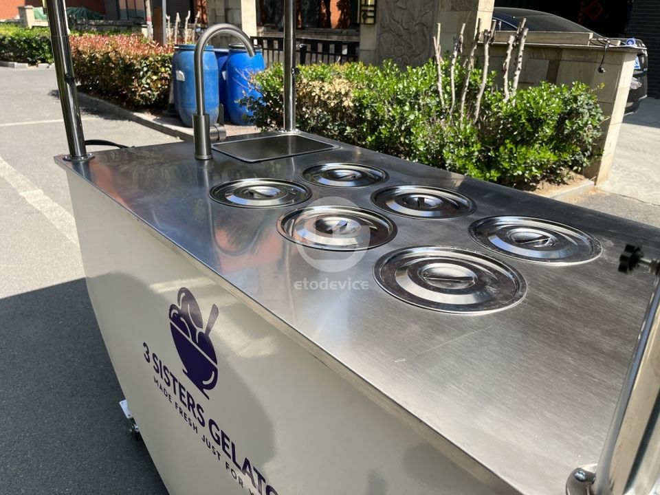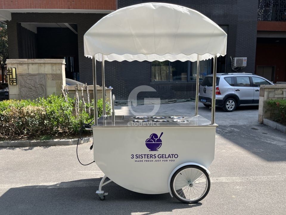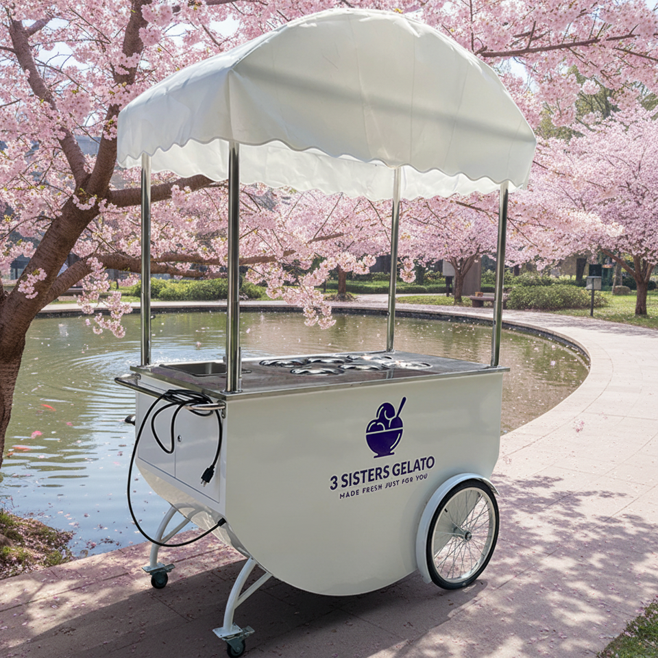 Carrito de Helados con Congelador y Exhibidor, Carrito de Venta Ambulante para Helados, Café, BBQ, Comida, Eventos, Playa