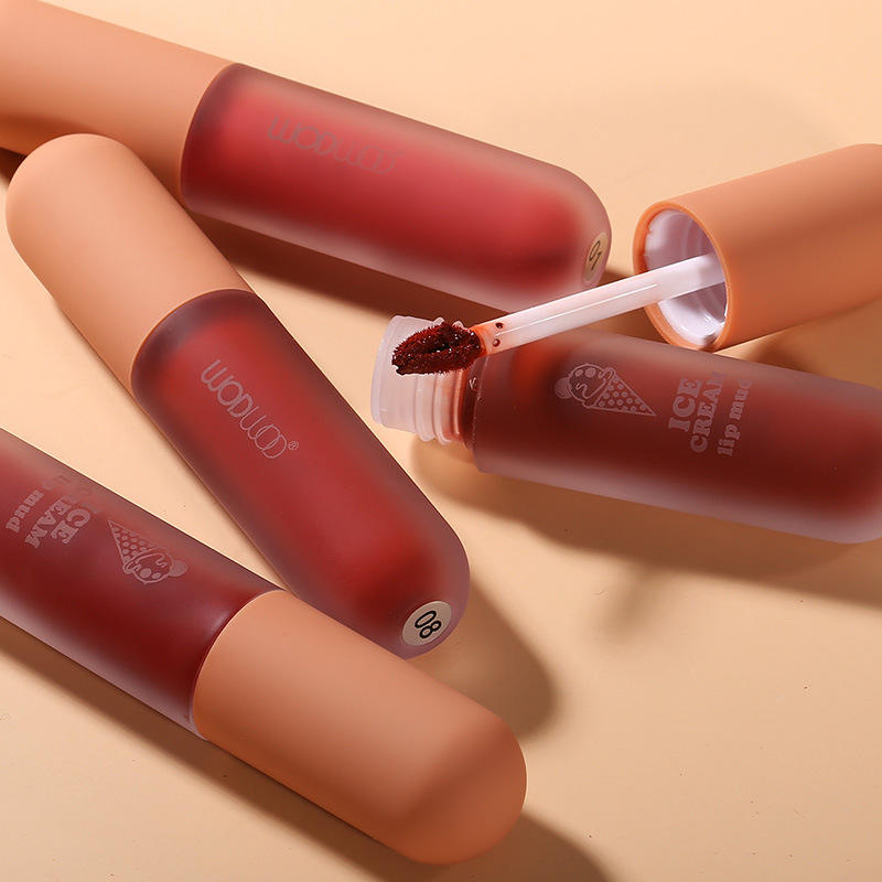 El brillo labial de terciopelo mate de barro labial de helado no se pega a la taza y no se decolora. Barra de labios desnuda diaria para estudiantes