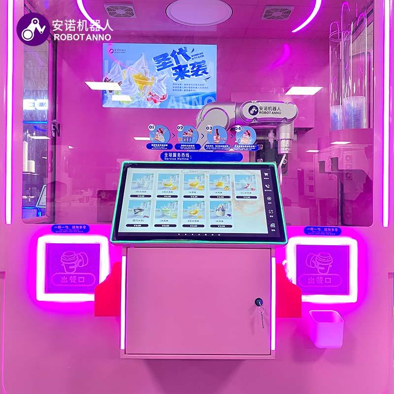 El robot manipulador de helados hace helados. Las celebridades de Internet entran. Máquina Expendedora de helados automática no tripulada