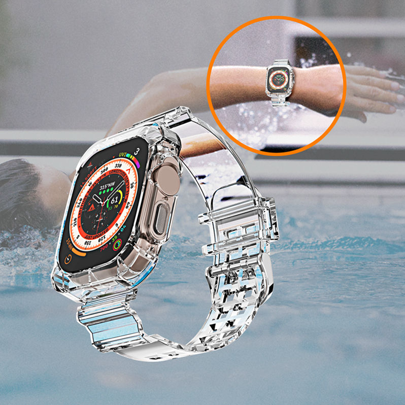 Correa de Reloj Integrada de TPU, Diseño Deportivo Transparente de Cubo de Hielo para Relojes Apple Series 11 8 Ultra de 49 mm