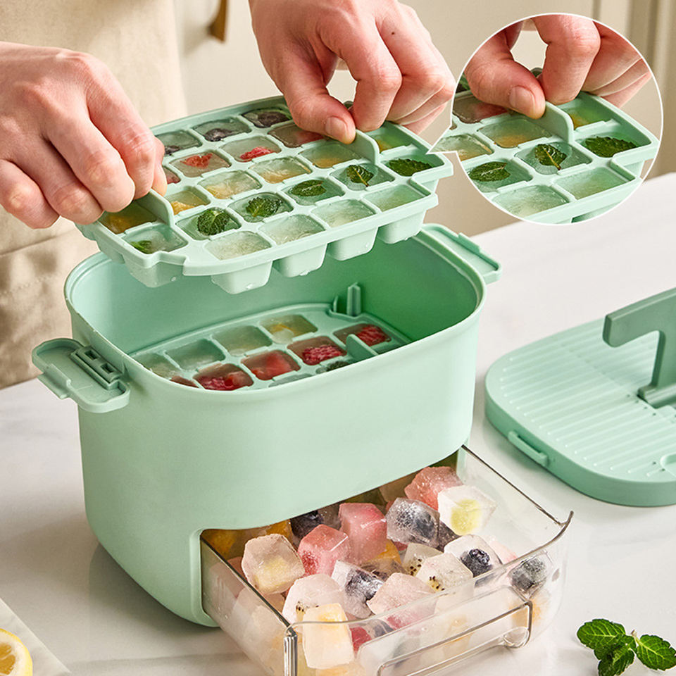 Bandeja para Cubitos de Hielo, Molde para Hielo, Máquina para Hacer Hielo para Bebidas, Fácil de Presionar para Liberar el Hielo, Diseño de Tapa Sellada con Recipiente, Pala para Hielo y 2 Bandejas para Hielo