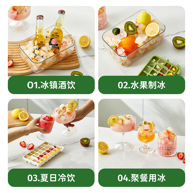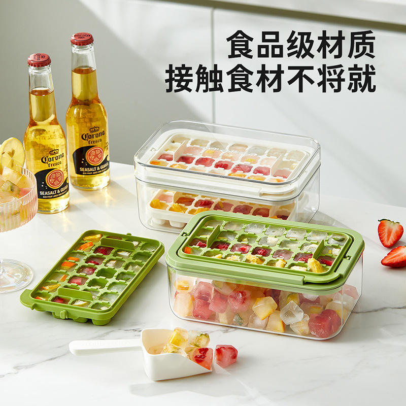 Ice Cube Tray Mold Square PP Plastic Manual Ice Maker For Kitchen Family Use With Storage Box