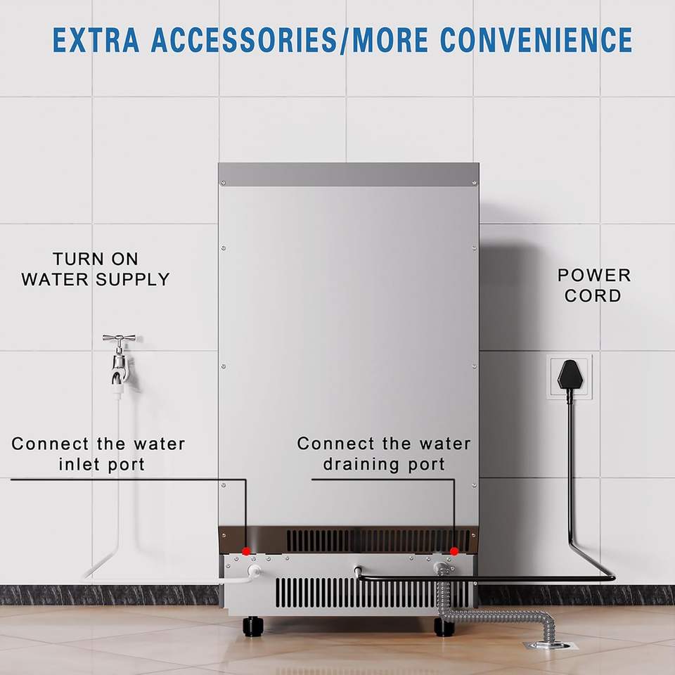 Máquina de Hielo Comercial, Máquina de Hielo de Acero Inoxidable con Capacidad de 48 Libras, Producción de 100 Libras/Día, Ideal para Restaurantes y Bares