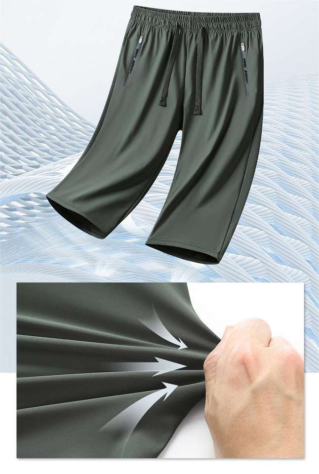 "Pantalones de siete minutos de seda helada para hombre, pantalones de chándal informales holgados de sección delgada de verano 2024, pantalones de secado rápido de talla grande gorda 2227"
