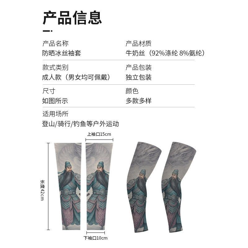 Ice Silk Sun Protection Arm Sleeves With Three Kingdoms Print Unisex Outdoor Cycling UV Protection Sleeve