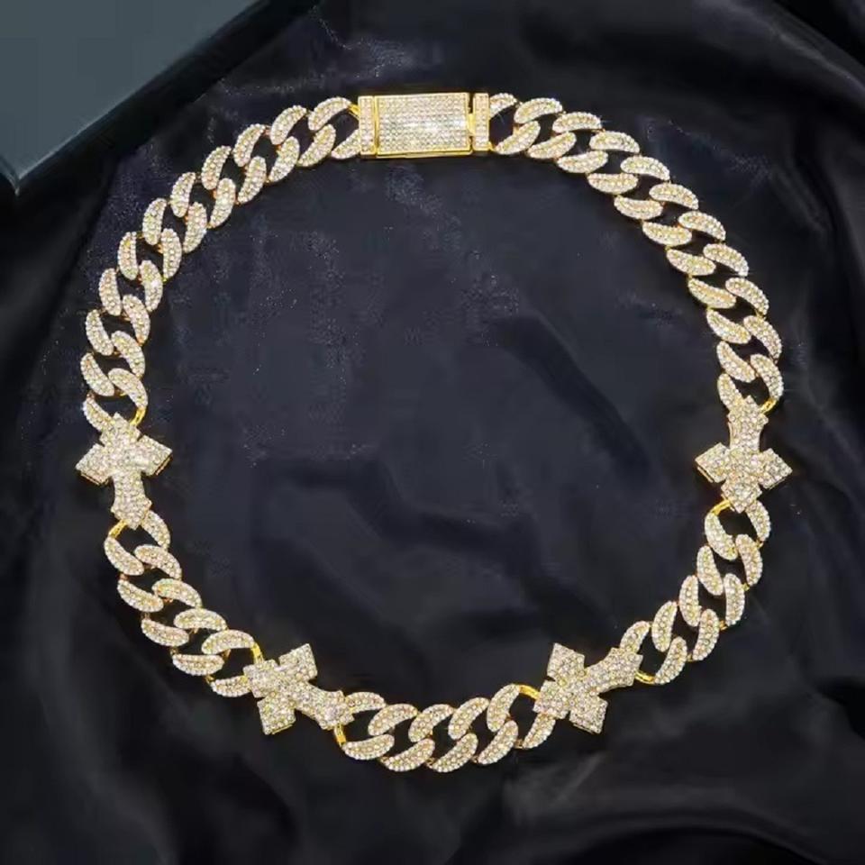 Cadena de eslabones cubanos helados Hip Hop moda oro blanco collar de diamantes cubanos con certificado IGI joyería de oro rosa