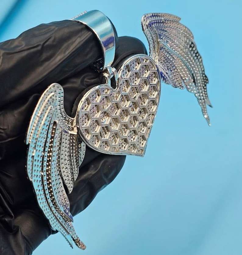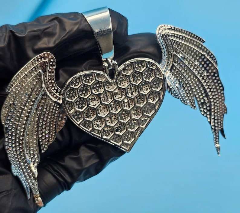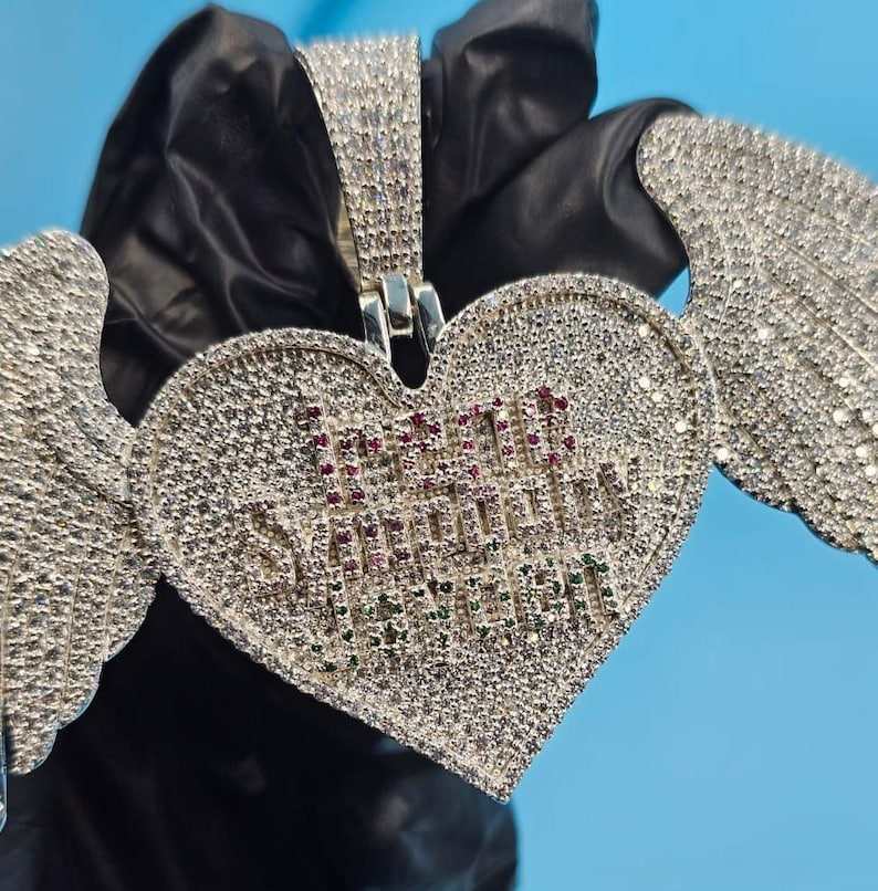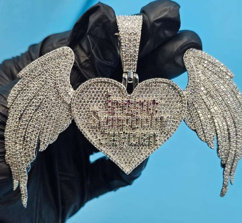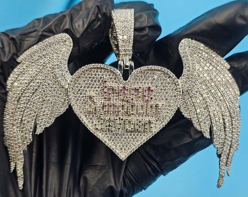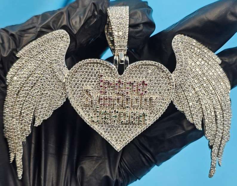 Colgante de Lujo de Plata de Ley con Moissanita VVS Personalizada en Forma de Corazón Helado y Ala de Ángel, Estilo Hip Hop Rapper, con Nombre Grabado, Brillante y a la Moda