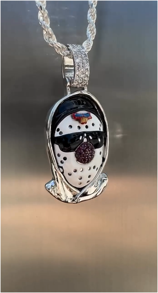 Colgante de máscara de hockey sobre hielo con cadena de cuerda, Plata de ley, Moissanita VVS, Bañado en rodio, Tendencia, Más vendido, Hip Hop, Bling, Lujo