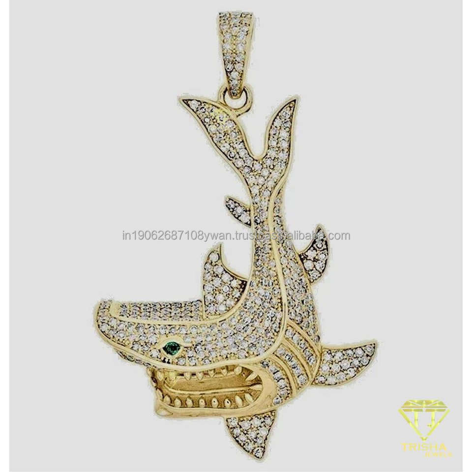 Colgante de Tiburón de Dibujos Animados de Hip Hop, Chapado en Rodio, con Incrustaciones de Moissanita, Certificado GIA, Plata 925, 3 Pulgadas de Largo