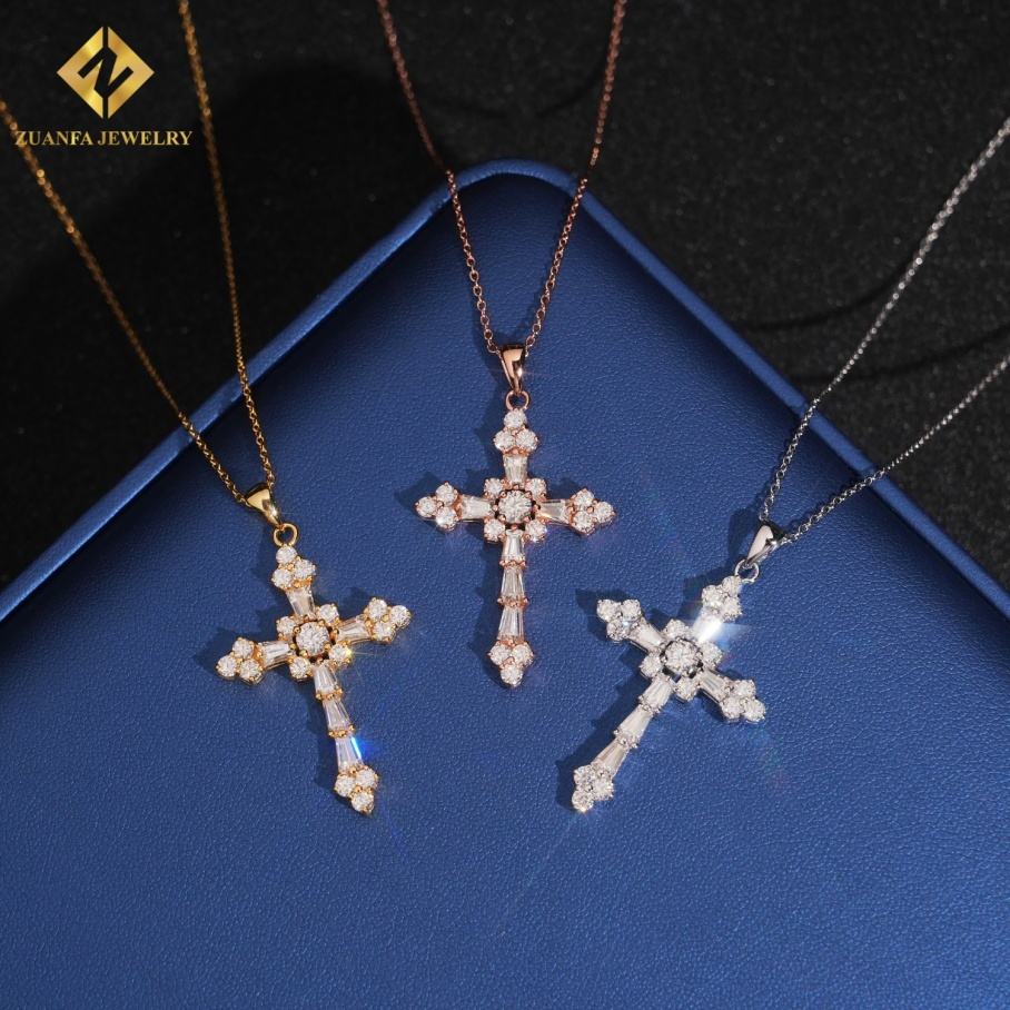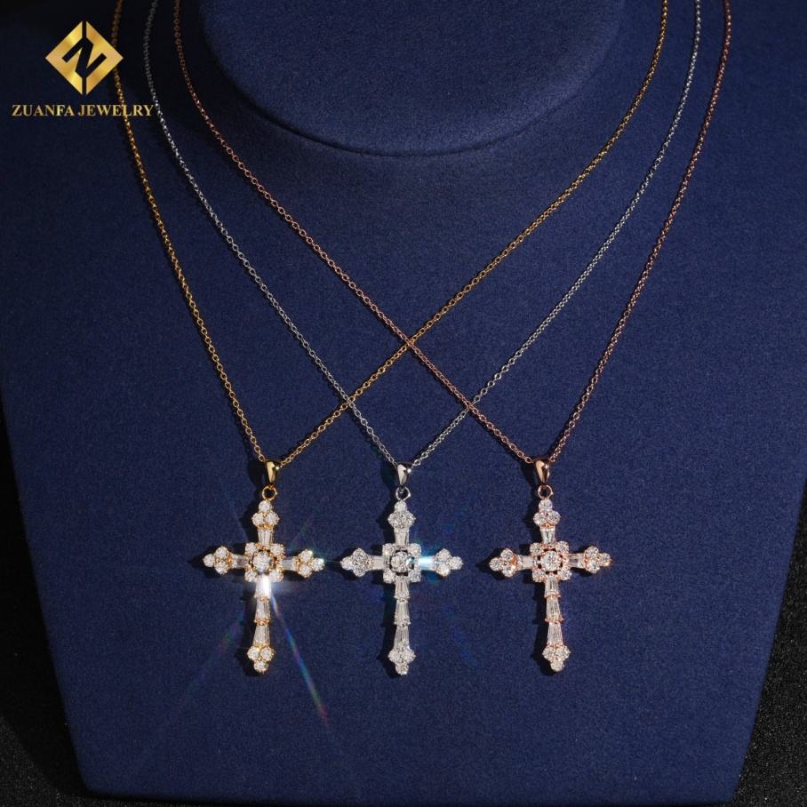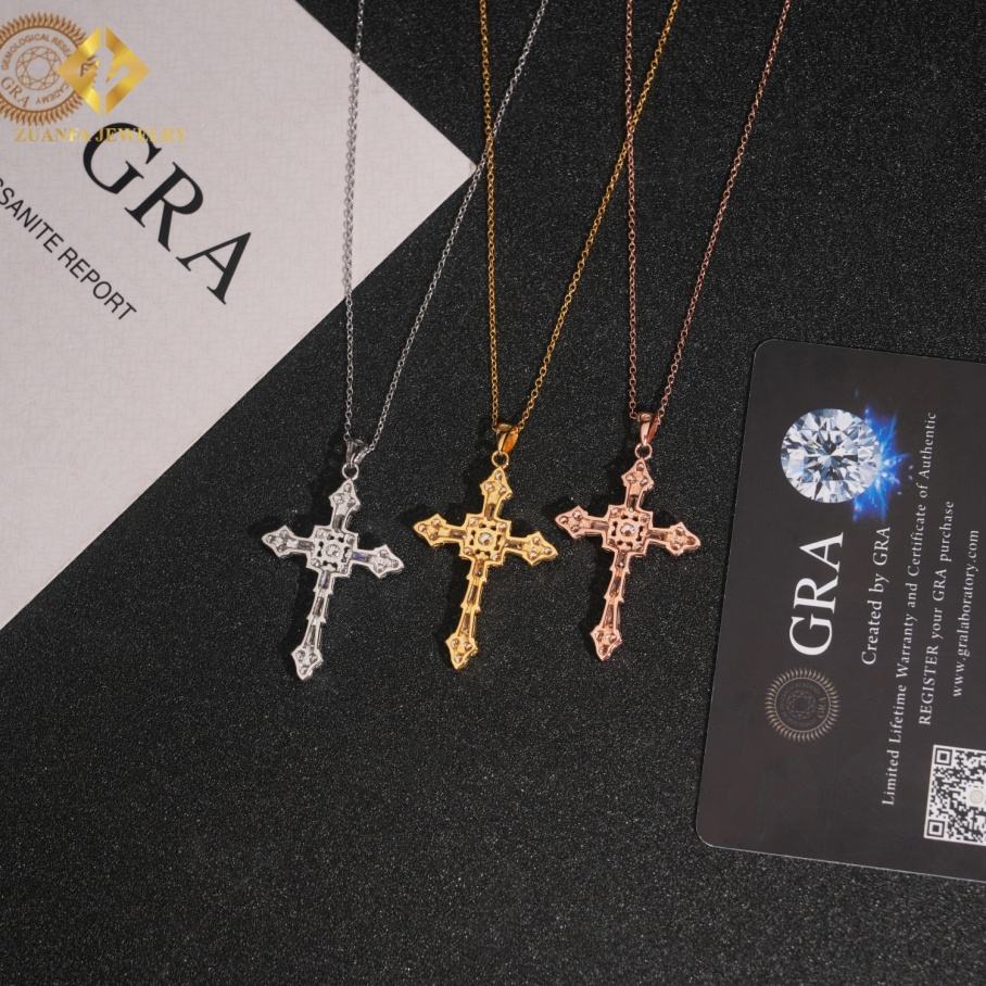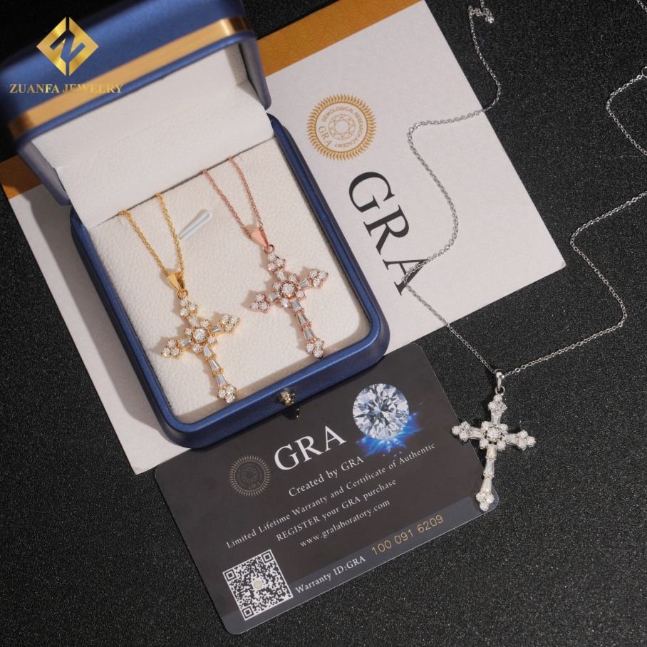 Collar con Colgante de Cruz Clásico de Plata 925 con Incrustaciones de Diamantes de Imitación VVS Estilo Hip Hop para Mujer, Certificado GRA
