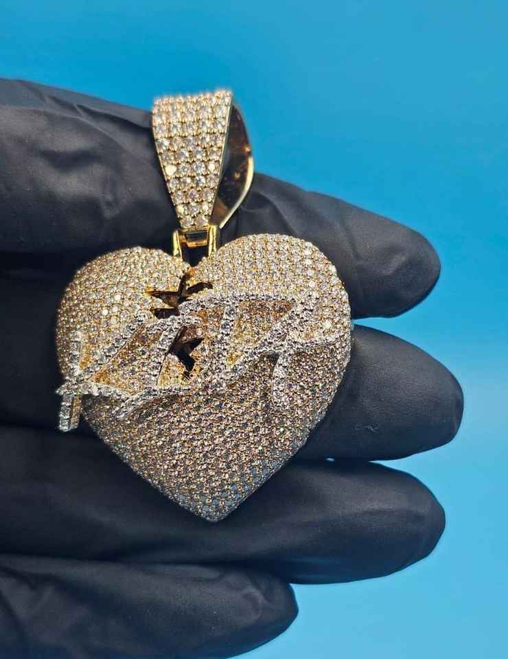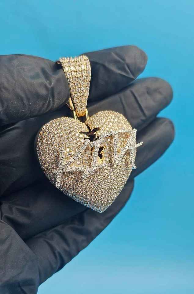 Collar con Colgante de Diamante de Corte Redondo Moissanite con Diseño de Corazón Roto en Letra KITA, Estilo Hip Hop, Plata de Ley 925, Joyería Fina, Regalo para Ella