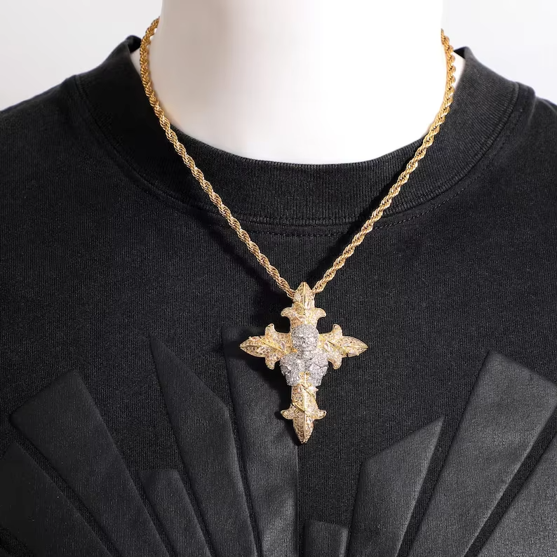 Colgante de Calavera con Incrustaciones de Circonitas, Chapado en Rodio, Tono Dorado, Estilo Gótico Hip Hop, Joyería para Hombre, para Fiestas