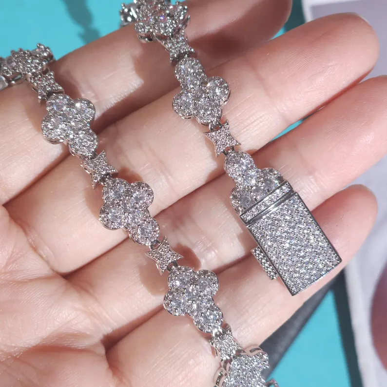 Collar de Cadena de Tenis con Cruz de Plata y Diamantes de Imitación Moissanite, Estilo Hip Hop, para Hombre y Mujer