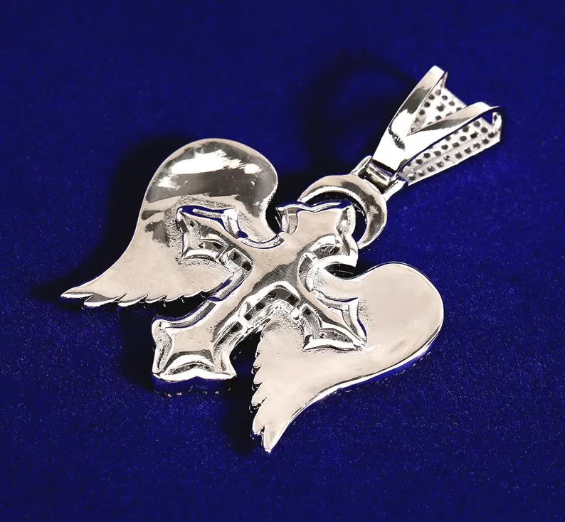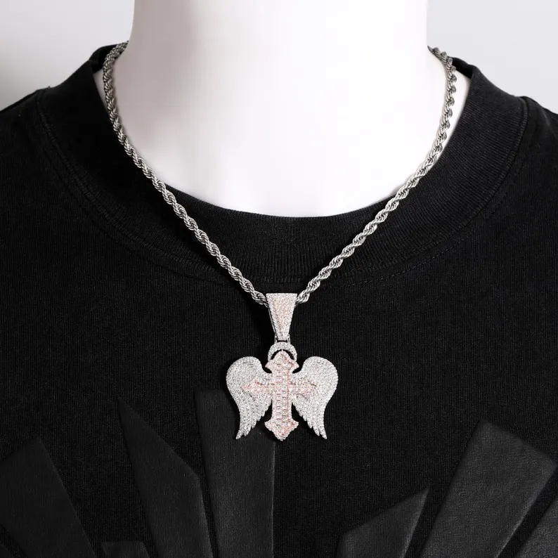 Iced Out Cross Wing Pendant Silver y Rose Gold Tone Hip Hop Jewelry para hombres y mujeres