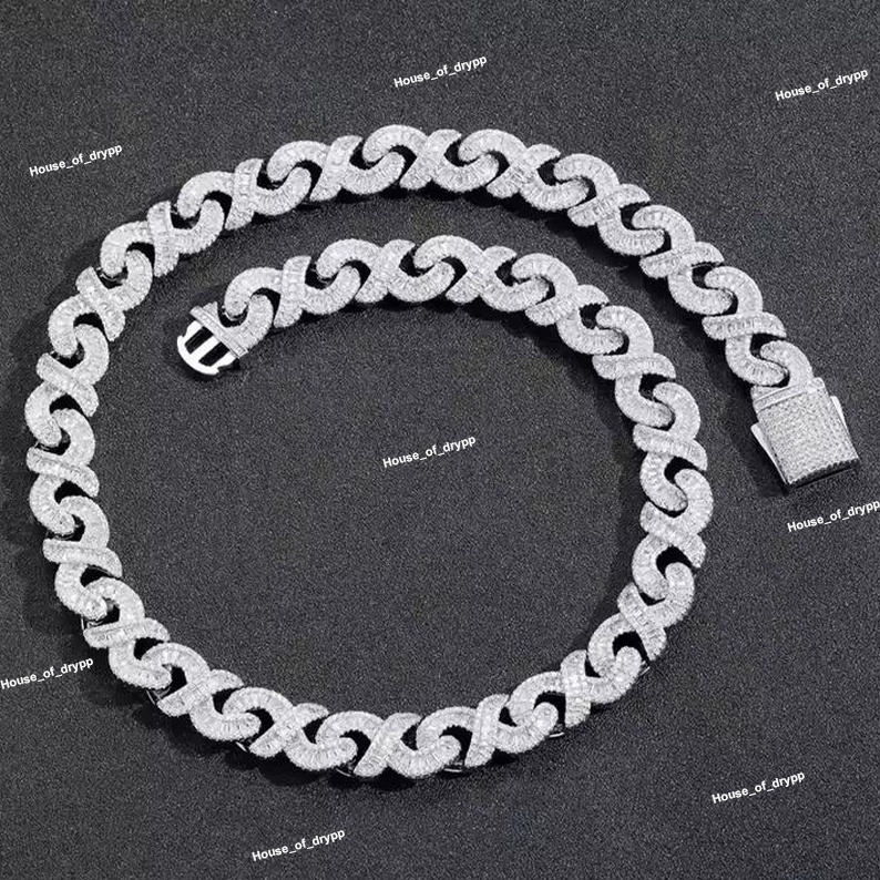 Collar Cuben Link Plateado con Diamantes de Moissanita Brillantes, Cadena de Efecto Hielo, Cierre de Caja, Estilo Hip Hop