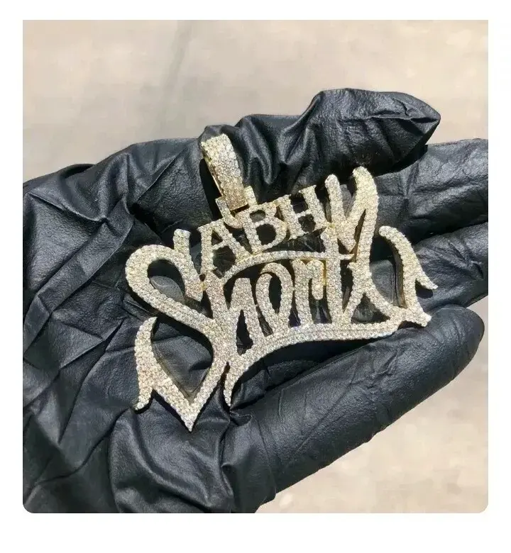 Colgante con Nombre Personalizado Iced Out, Micro Pavé de Moissanita, Colgante de Diamantes Estilo Hip Hop, Colgante de Letra Personalizado Bling, Joyería Personalizada