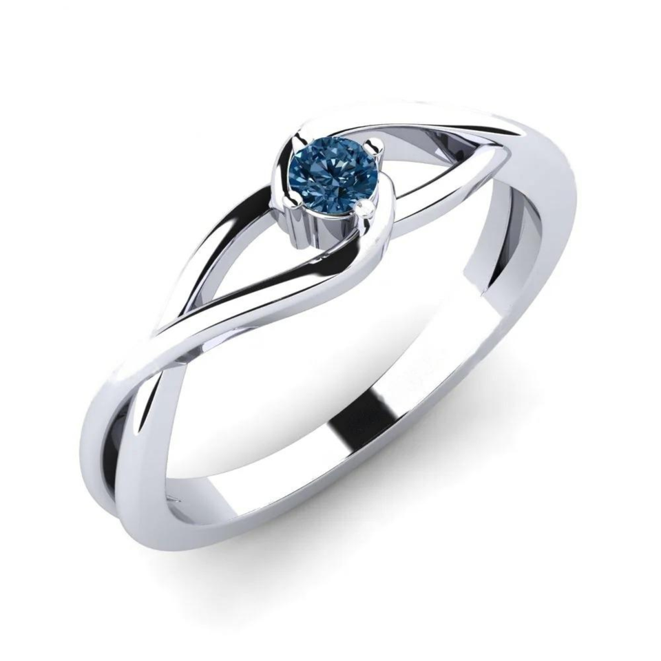 Anillo de diamantes de forma redonda azul elegante Iced Out Anillo de diamantes de oro blanco de 18 quilates para joyería de mujer del fabricante indio
