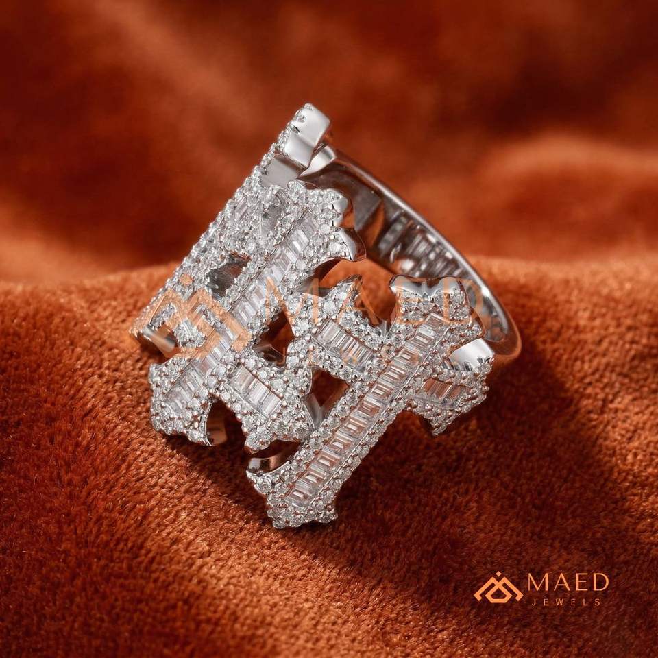 Anillo llamativo con cruz gótica estilo Iced Out en plata de ley 925 – Banda multicruz de plata de ley con micro pavé y baguette