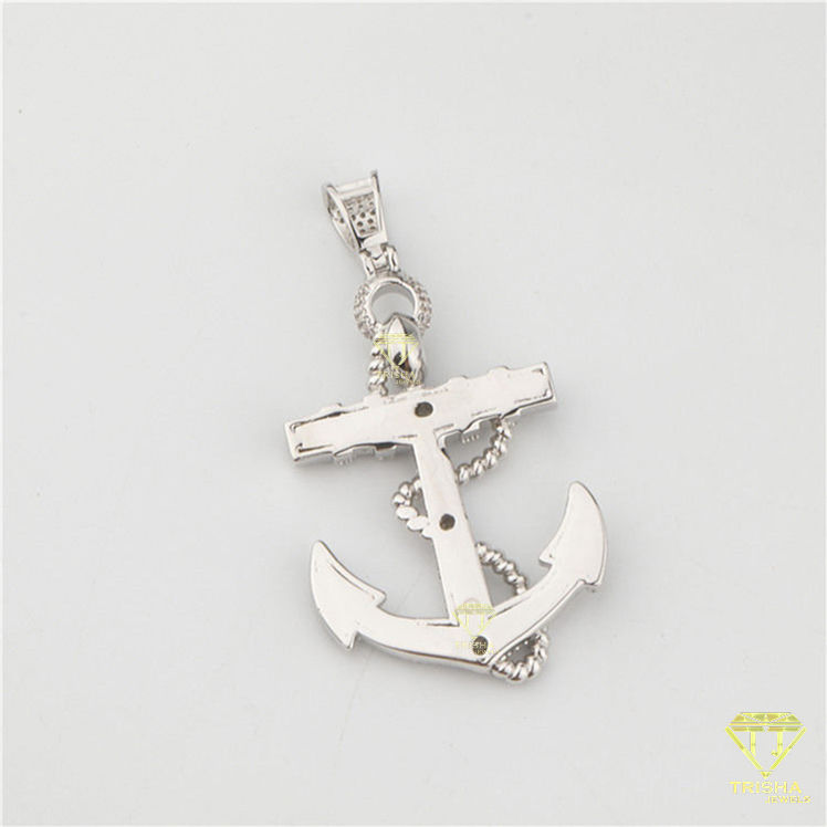 Iced Out Hip Hop Colgante de ancla náutica con Moissanite Diamond Pave Cuerda Ancla Joyería Encanto