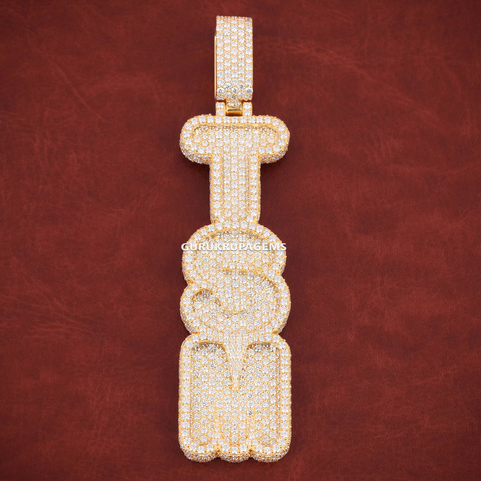Colgante de letra de joyería helada, colgante de diamante de laboratorio de 2 capas de plata 925 Vertical, colgante personalizado para cadena de eslabones cubanos