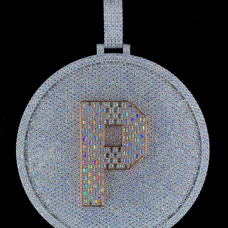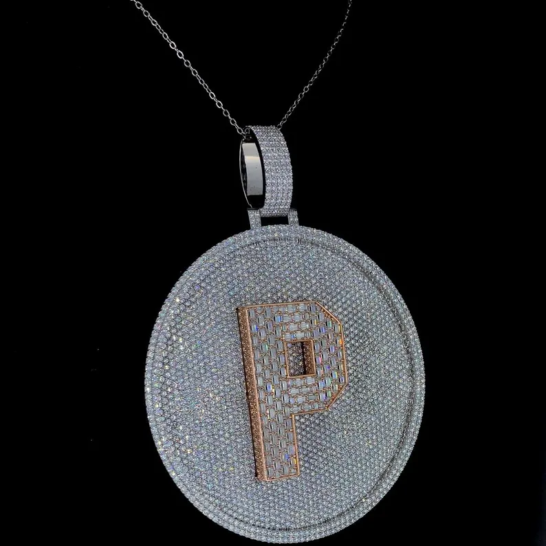 Colgante Redondo con Letra P con Incrustaciones de Diamantes, Estilo Hip Hop, Tono Plateado, Cadena con Inicial, Joyería de Lujo