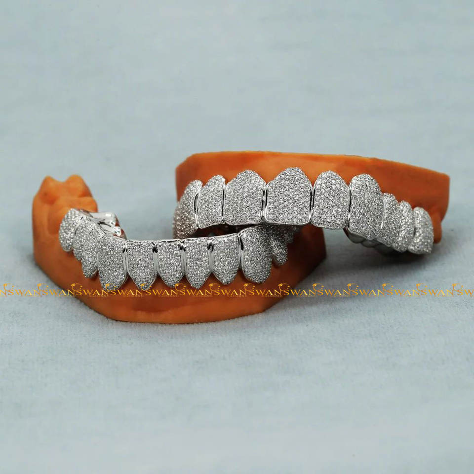 Iced Out Micro Prong Teeth Grillz Moissanite Diamond 925 Sterling Silver para hombres rapero joyería al por mayor