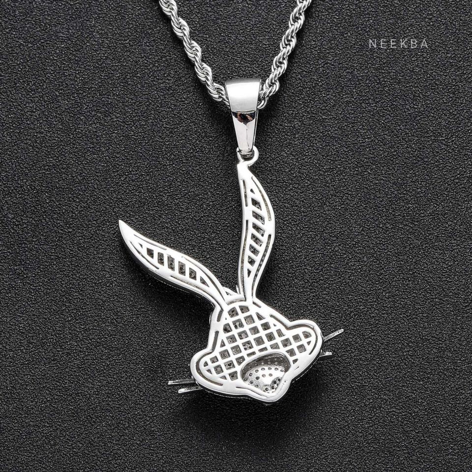 Colgante de Conejo de Dibujos Animados con Incrustaciones de Moissanita en Plata de Ley 925 – Joyería Hip Hop, Colgante de Bugs Bunny de Loney Tunes