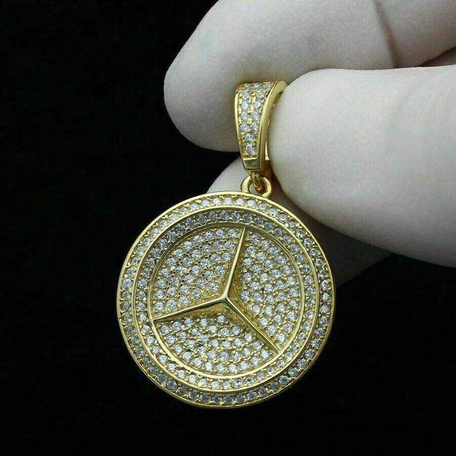 Collar con Colgante de Estrella de Tres Puntas con Incrustaciones de Moissanita, Estilo Hip Hop, con Logotipo de Auto, para Hombre, en Plata de Ley Chapada en Oro