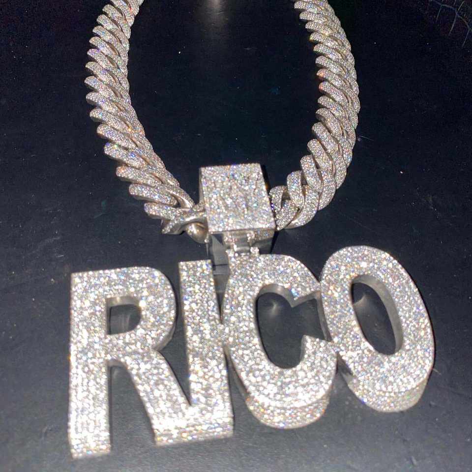 Colgante con Nombre Personalizado con Cadena Cubana, 38 Quilates, Moissanita VVS, Plata de Ley, Estilo Hip Hop, Letra Personalizada de Lujo, Unisex
