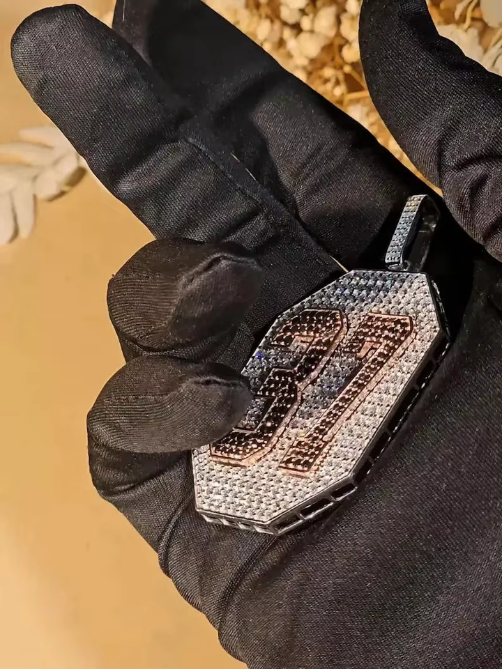 Colgante con Número Iced Out, Chapado en Rodio, Plata y Piedra Negra, Estilo Hip Hop, Joyería Personalizada para Hombre